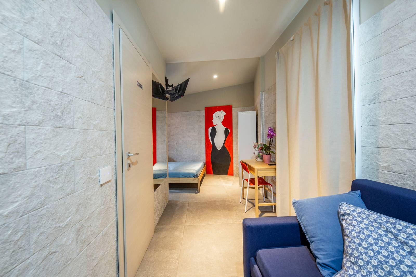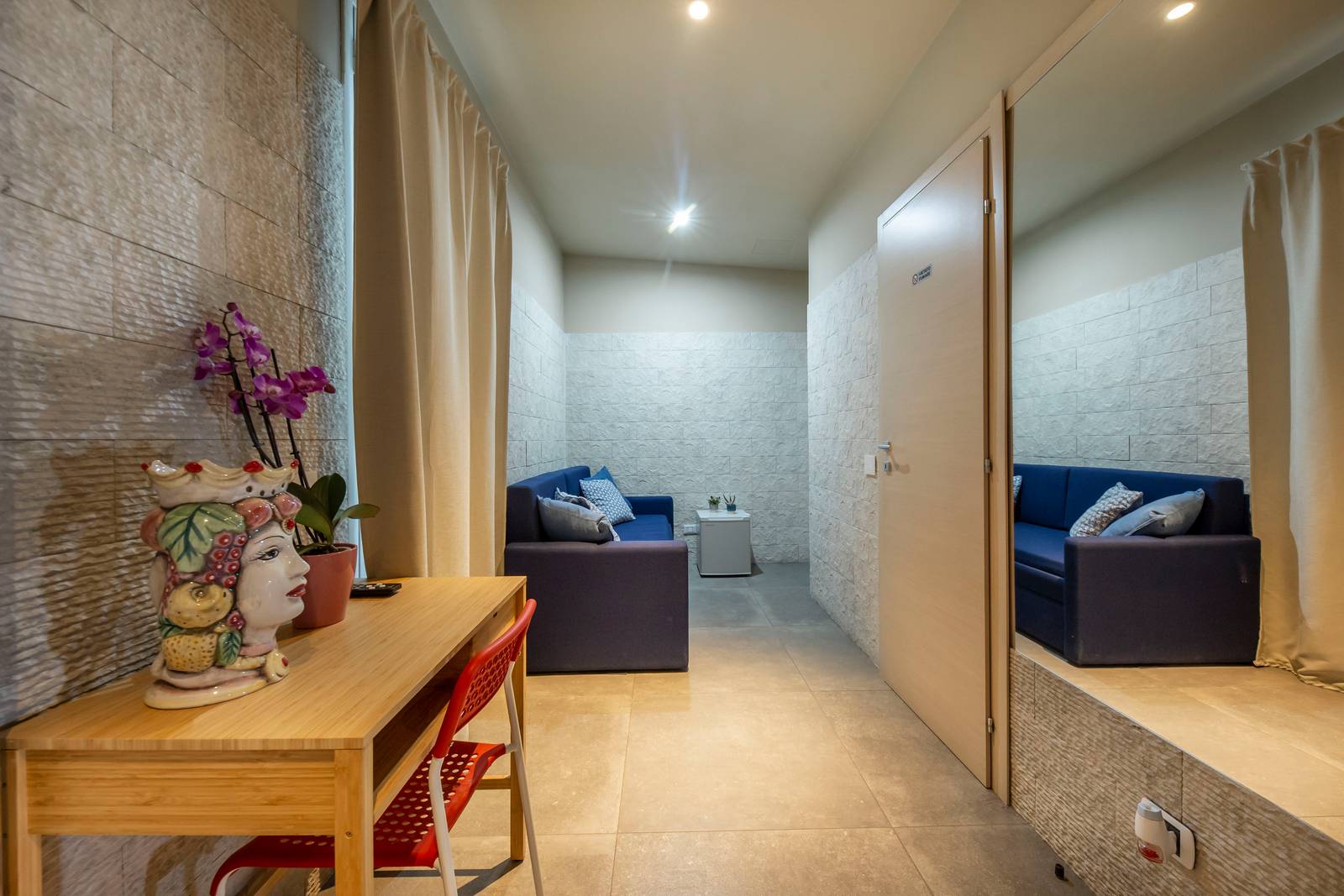 La camera perfetta per la coppia o per il singolo dallo stile sobrio, 20 mq di grandezza ovviamente con bagno privato interno con una ampia e comoda doccia. Dotata di ogni comfort per un soggiorno sereno e rilassante, ambiente climatizzato, TV, frigobar, WI Fi, possibilità di culla su richiesta. La camera all’ingresso è dotata di divano che all’occorrenza può diventare un terzo letto oppure trasformarsi in un pratico letto a castello per ospitare una famiglia con max 2 bambini. E’ possibile usufruire dell’ampio giardino e della piscina esterna comune.